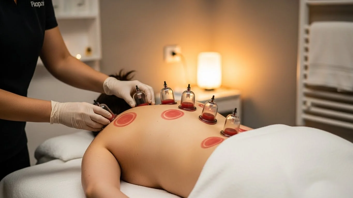 During cupping therapy, your session usually begins with a brief consultation to understand your pain areas, health concerns, and treatment goals. The therapist then places clean cups on specific parts of your body, such as the back, shoulders, or legs, and creates gentle suction using heat or a suction pump. You may feel a tight pulling sensation, but it is generally comfortable and relaxing. The cups remain in place for about 10 to 30 minutes, allowing improved blood flow and muscle relaxation. After the cups are removed, the therapist may apply light massage or provide aftercare advice. It is normal to see circular marks on the skin, which fade naturally within a few days and are a sign of increased circulation rather than bruising.