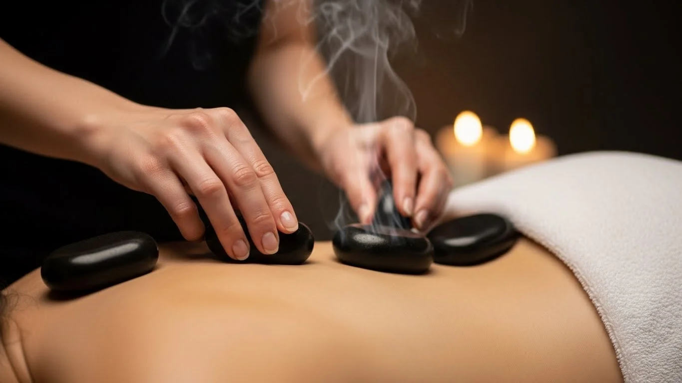 During a Hot Stone Massage, you can expect a deeply relaxing and soothing experience designed to release tension and rejuvenate both body and mind. The session usually begins with a brief consultation where the therapist asks about any areas of discomfort or specific concerns. You will then lie comfortably on a massage table while smooth, heated stones are placed on key points of your body, such as your back, shoulders, arms, legs, and hands. The therapist may also use the warm stones to massage your muscles directly, combining gentle kneading, long strokes, and circular movements to loosen tight muscles and improve circulation. The heat from the stones penetrates deeply, promoting relaxation, reducing stress, and enhancing overall well-being. Many clients find the experience calming and restorative, leaving them with a sense of renewed energy, reduced muscle tension, and mental clarity.