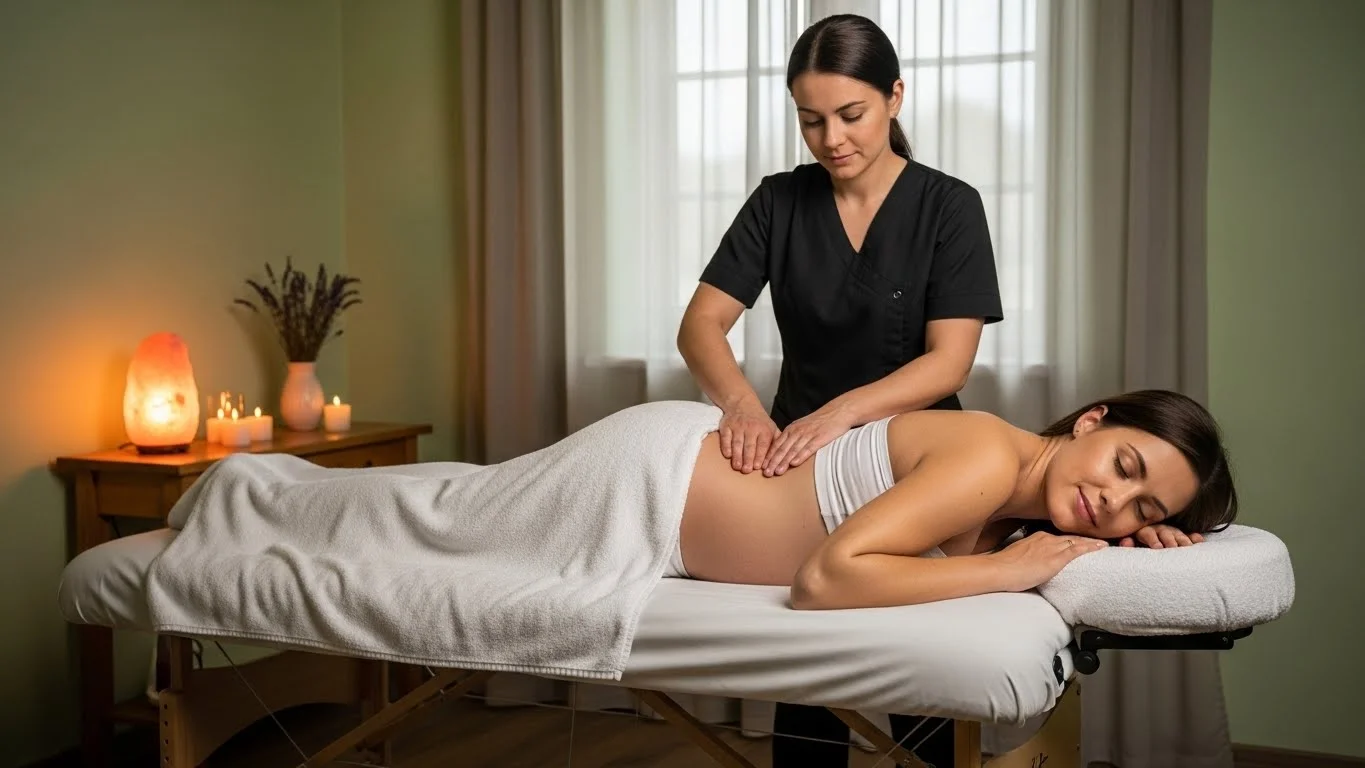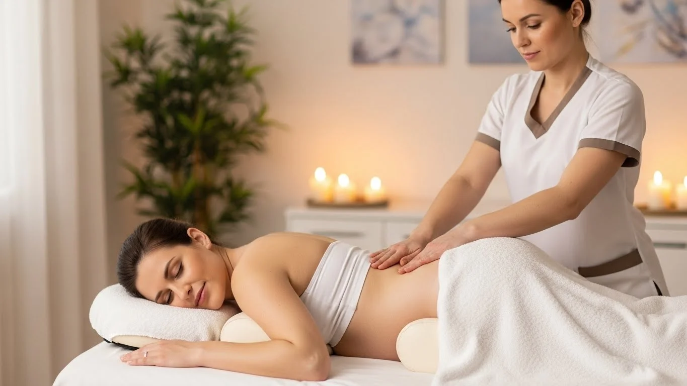 During a pregnancy massage, you can expect a calm, supportive, and carefully tailored experience designed for your comfort and safety. The session usually begins with a brief consultation where the therapist asks about your stage of pregnancy, any discomfort, and areas that need attention. You will be positioned comfortably, most often lying on your side with soft pillows for full support, ensuring there is no pressure on the abdomen. The therapist uses gentle, controlled movements and light to moderate pressure, focusing on common tension areas such as the lower back, hips, legs, shoulders, and feet. Pregnancy-safe oils or lotions are used, and the pace remains slow and relaxing throughout. The massage aims to ease muscle strain, reduce swelling, improve circulation, and promote deep relaxation, leaving you feeling calm, refreshed, and more comfortable in your body.